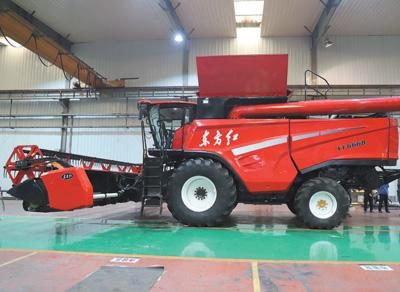 另一件是擺放在東方紅智創空間的我國首臺大型高效穀物聯合收割機。去年9月,爲滿足當下集中連片土地耕作需要,一拖創新研製了這款產品,批量生產後將打破國際市場壟斷,爲糧食安全保駕護航。
