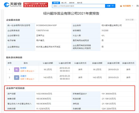 另外,國祥股份披露,韶華置業是公司曾參股企業,招股書稱,2021年,該公司總資產1380.26萬元,實現盈利3.99萬元,但韶華置業對外披露的2021年財務數據卻顯示,截至2021年末,公司總資產1432.69萬元,當年虧損21.1萬。這與招股書數據自相矛盾,國祥股份也未就差異作出說明。