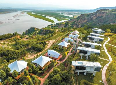 山西省運城市芮城縣大力發展黃河旅遊產業,圖爲該縣禹王臺太空艙度假休閒灣一角。