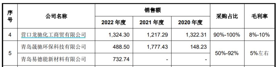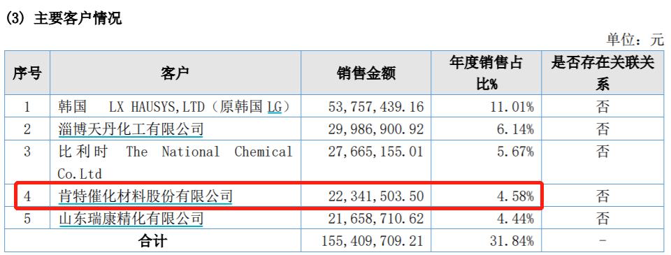 此外,山東同成醫藥股份有限公司是肯特催化的主要供應商之一,2020年和2021年採購金額分別爲2566.31萬元和2766.37萬元。但是根據同成醫藥在新三板掛牌期間披露的年報顯示,2020年對肯特催化的銷售金額爲2539.98萬元,與肯特催化披露的採購數據相差很小,這也指向兩家公司的購銷數據匹配度是比較高的;但是針對2021年,同成醫藥披露的銷售金額卻僅有2234.15萬元,相比肯特催化披露的採購金額少了500萬元以上。