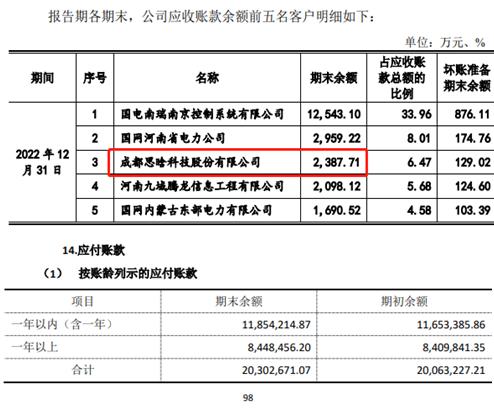 不僅如此,合衆偉奇在招股書中披露,在2022年末對“成都思晗科技股份有限公司”的應收賬款餘額高達2387.71萬元。但是根據思晗科技2022年年報,該公司應付賬款全部餘額僅爲2030萬元,其中一年以內應付賬款餘額尚不足1200萬元,均與合衆偉奇披露的應收賬款餘額存在重大差異。截止到2022年末,思晗科技的賬面貨幣資金餘額僅剩962.16萬元,短期借款餘額卻高達3500萬元以上,合衆偉奇對其高達近2400萬元的應收賬款是否安全,同樣值得關注。