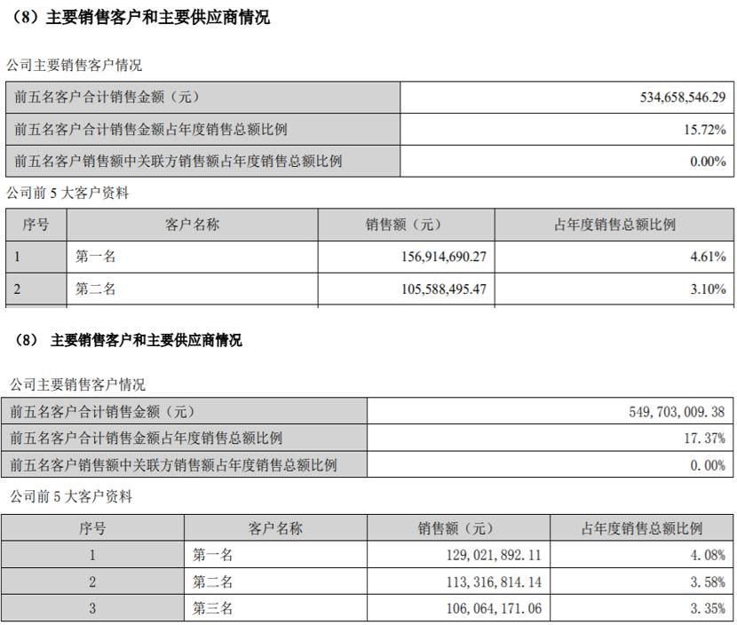 再來看宏石激光的經營數據,招股書披露銳科激光是公司的第一大供應商,2021年和2022年採購金額分別高達24871.5萬元和22818.98萬元,是宏石激光最主要的激光器供應商。但是根據銳科激光此前發佈的2021年和2022年年報,當年的第一大客戶對應銷售金額分別僅爲1.57億元和1.29億元,都與宏石激光披露的採購金額相差巨大。