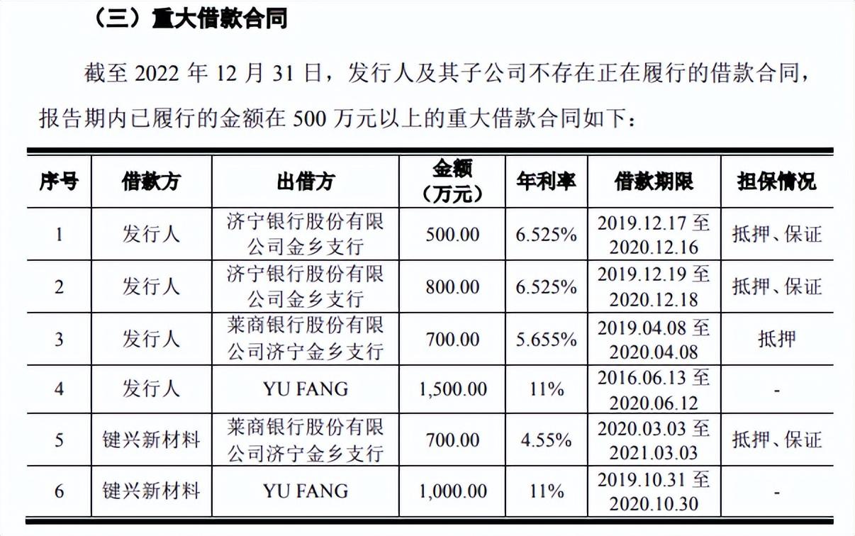 鍵邦股份招股書還披露了報告期內公司重大借款合同,其中鍵邦股份及子公司鍵興新材料向YU FANG借款利息11%,而同期其他借款年利率在4.55%至6.525%之間,YU FANG是公司前董事王鎮波的妻子。鍵邦股份向YU FANG借款利率明顯高於其他借款,鍵邦股份並未說明其中原因。