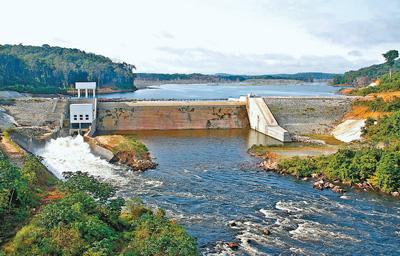 加蓬大布巴哈水電站攔河大壩外景。