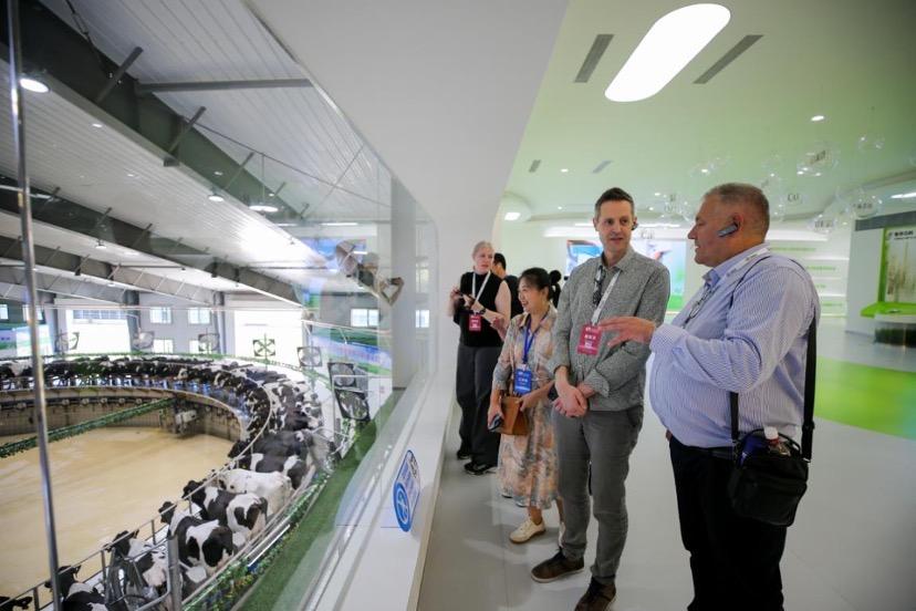 8月5日下午,來自世界乳業10強企業、國內乳業20強企業、國際乳業產業鏈知名企業、行業協會的嘉賓和“兩院”院士、專家學者組成的400餘人觀摩團,走進世界奶業大會唯一觀摩地——伊利現代智慧健康谷實地參觀考察,沉浸式體驗中國奶業在科技創新、智能製造、綠色可持續發展等方面成果。