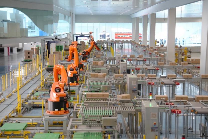 當大會觀摩團走進第二站——伊利全球乳業智能製造產業園,看到了這樣一番景象,在乾淨的無人車間裏,AGV智能搬運車靈活運轉、機械臂輕鬆完成產品的傳送及舉放……身處這個基地,無論走到哪裏,都能感受到全程無人化、過程透明化、生產高效化、信息可追溯化帶來的先進技術氣息。