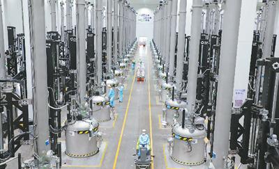 在協鑫科技寧夏中衛5GW(吉瓦)顆粒硅應用示範基地生產車間,一輛輛自動導引運輸車來回穿梭。從加料到取棒,該項目已實現全流程數字化和自動化操作。