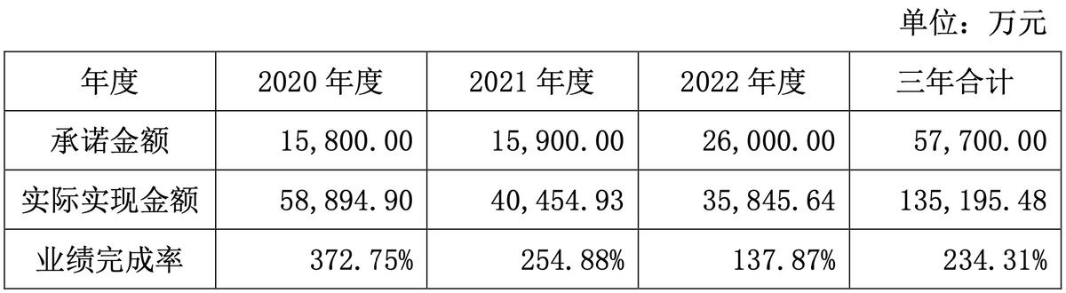 過去三年,巨星有限超額完成業績承諾。2020年-2022年,巨星有限分別實現淨利潤5.89億元、4.04億元、3.58億元,累計實現13.52億元,淨利潤業績完成率達234.31%。