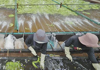 不久前,記者探訪了斯登德朗縣的地澤香蕉園。該香蕉園佔地約570公頃,除大片香蕉林外,還有兩個包裝廠,種植、採摘、清洗、包裝等流程全部在園內完成。