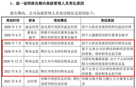 此外,《審覈問詢函的回覆》中披露新鋁時代此前在2020年7月至2021年8月這短短一年期間,更換了2次財務總監職務,而且在前任財務總監史久全於2020年12月辭任之後,現任財務總監李勇在2021年8月才填補了崗位空缺,此間相隔時間長達8個月。