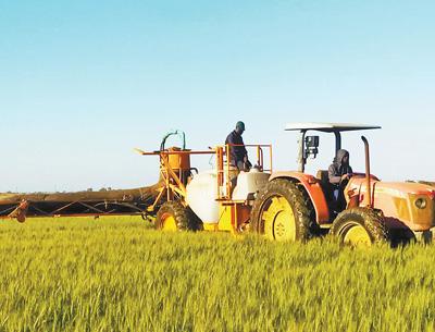 機械噴霧打藥機在中贊友誼農場田間作業。