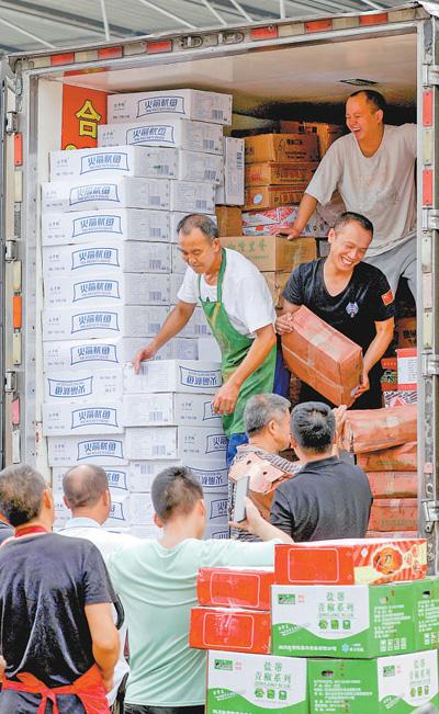 西部(重慶)科學城,明品福凍品交易市場裏,工人們在裝運凍品。