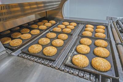 廣西壯族自治區北海市合浦縣月餅小鎮,經過高溫烤制後,金燦燦的月餅出爐。