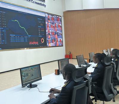 在肯尼亞內羅畢快速路監控中心,工作人員正在監測車輛運行狀況。