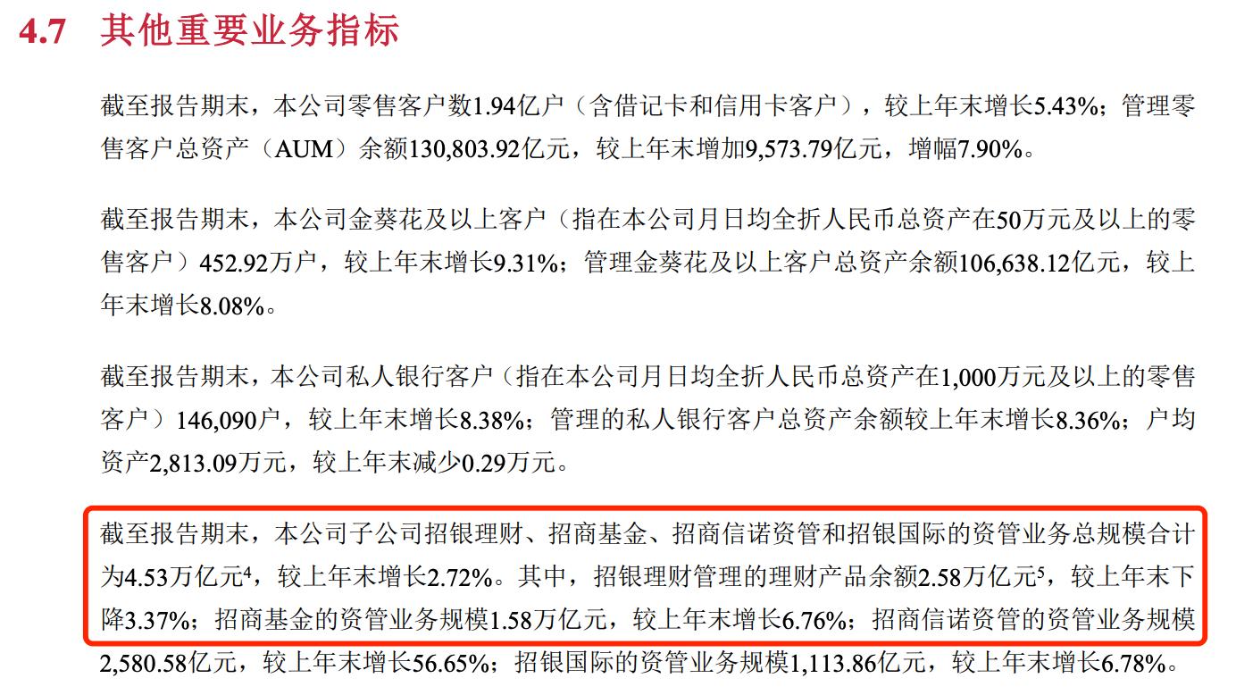 此外,招商銀行三季報披露了招銀理財管理的理財產品餘額爲2.58萬億元,較上年末下降3.37%。受此影響,招商銀行資產管理手續費及佣金收入下滑。招商銀行在三季報中表示,前三季度該行資產管理手續費及佣金收入86.74億元,同比下降8.14%,主要是招銀理財產品管理規模同比下降。
