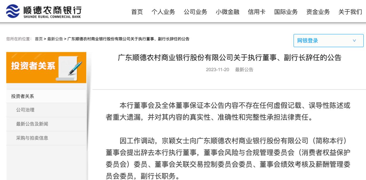 【環球網財經訊】日前,據順德農商行公告,該行行長、副行長向董事會提出辭職。