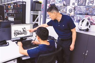“這個座椅高度偏低了。”在宗申創新研究院的摩托車設計二室,設計人員張宇正用電腦軟件調整一輛摩托車的設計細節。“前不久剛做出油泥模型,根據大家的建議來做調整,如此反覆幾次,再進入試製階段,確保設計合理。”