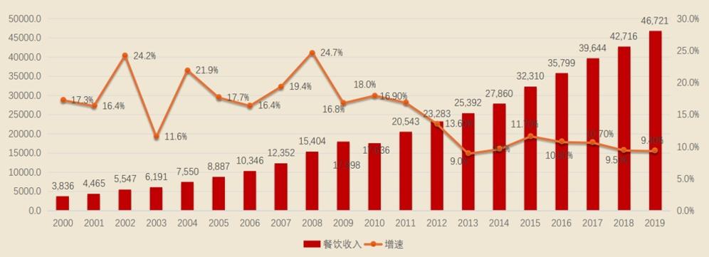 進入21世紀後,在國家的經濟快速發展下,餐飲業也呈現快速發展趨勢。2006年市場規模達到萬億,2011年達到2萬億,之後更是不斷突破,預計2023年將要突破5萬億。