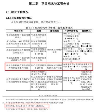 但是在2023年3月發佈的“瀝青裝備智能化生產建設項目”環境影響報告顯示,鐵拓機械瀝青攪拌設備產能爲250臺/年,項目將引進先進的生產及其他配套設備,增產瀝青攪拌設備50臺,即擴建後總規模爲年產瀝青攪拌設備300臺。這一產能數據遠超招股書披露值。如若環境影響報告披露的產能數據真實,則鐵拓機械目前產能利用率遠不及招股書披露值,公司信息披露真實性和募投項目必要性都將大打折扣。