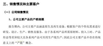 在2021年公司發佈的招股說明書中,公司稱主要產品涵蓋原生及再生設備,根據客戶的個性化需求進行研發、設計、生產、銷售及服務。由於各系列產品所需原材料、投入工時、產品形態等差異較大且各系列產品可共用生產線生產,因此公司主要產品不存在傳統意義上的“產能”概念。