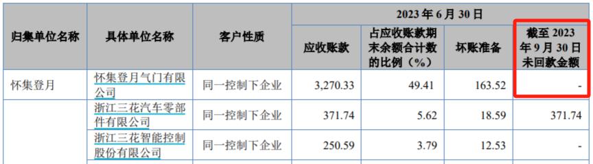 不僅如此,懷集登月也是金則利應收賬款主要欠款對象,2023年上半年末涉及金額高達3270.33萬元,賬齡全部爲1年以內欠款,而同期登雲股份披露的1年以內賬齡應付賬款餘額總共只有8495.21萬元,也即單是對金則利一家供應商的欠款,就佔到登雲股份全部應付賬款餘額的三分之一。另據金則利披露,對懷集登月2023年上半年末的3270.33萬元應收賬款,到2023年9月末的未回款金額爲零,也即懷集登月在2023年第三季度中向金則利支付了全部3270.33萬元欠款;但是根據登雲股份披露的財報數據,第三季度支出的“購買商品、接受勞務支付的現金”金額總共只有3737.23萬元,如果金則利的信息披露準確,就意味着登雲股份在第三季度支出全部採購款,有超過80%是向金則利這一家供應商支付的。