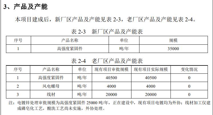 另據招股說明書顯示,報告期內,宇星股份產能37500噸/年,2020年至2022年,產能利用率均超過100%。宇星股份稱,公司現有產能已經無法滿足市場增長的需求。但“年產35000噸高強度緊固件投資項目環境影響報告表”顯示,公司現有產能是高強度緊固件40500噸/年,另外還有風電螺母4000噸/年、線材20000噸/年。上述產能數值也遠超招股書披露值。關於宇星股份真實產能究竟是多少,以及募集資金用於繼續擴大產能是否有必要等問題,本網記者向宇星股份求證,但公司未予回應。