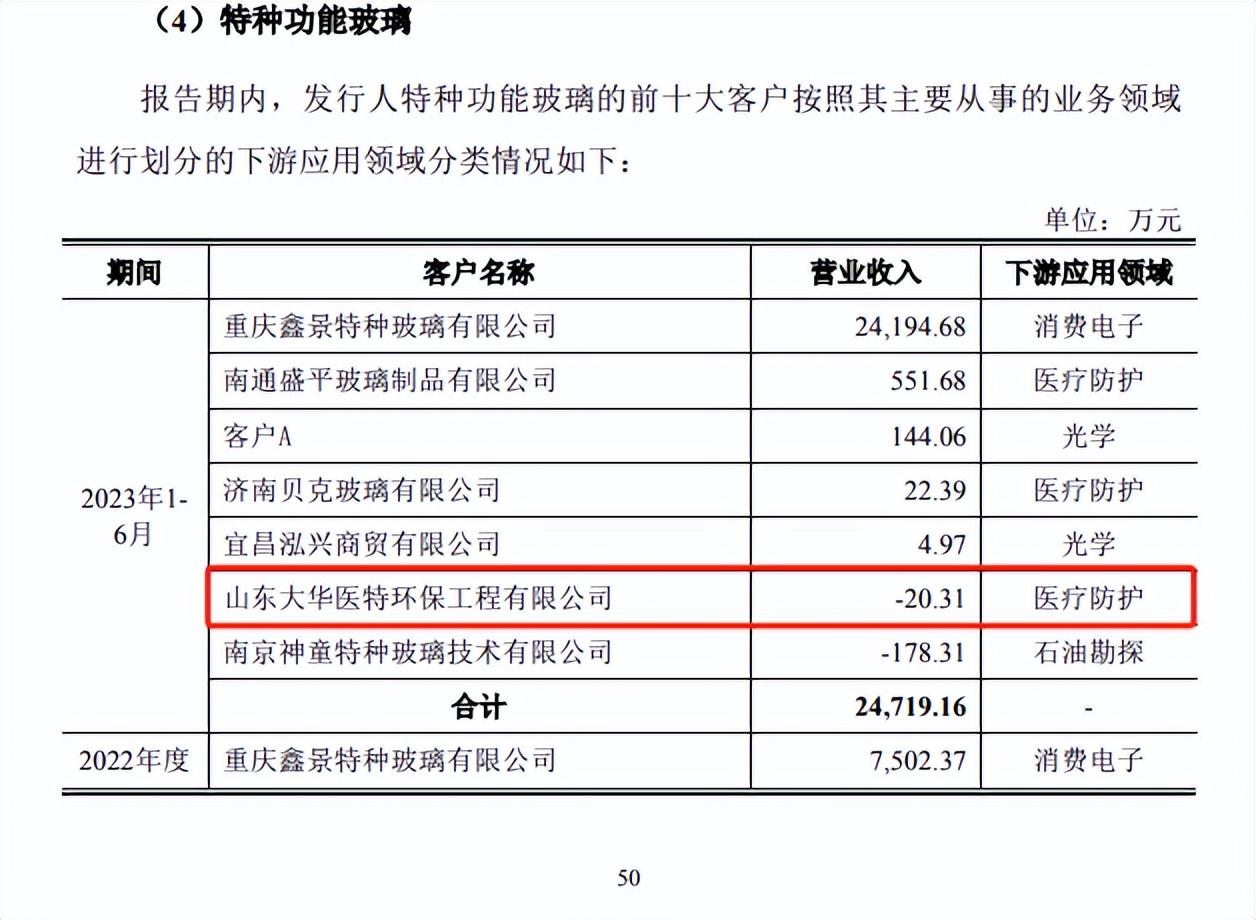 再看具體客戶,戈碧迦在《審覈問詢函的回覆》第50頁中稱,2023年1-6月公司向山東大華醫特環保工程有限公司銷售金額爲-20.31萬元;但在239頁中又稱,2023年1-6月公司向山東大華醫特環保工程有限公司銷售金額爲-13.44萬元。針對上述數據差異,本網記者向戈碧迦發函求證,但截至發稿公司未予回應。