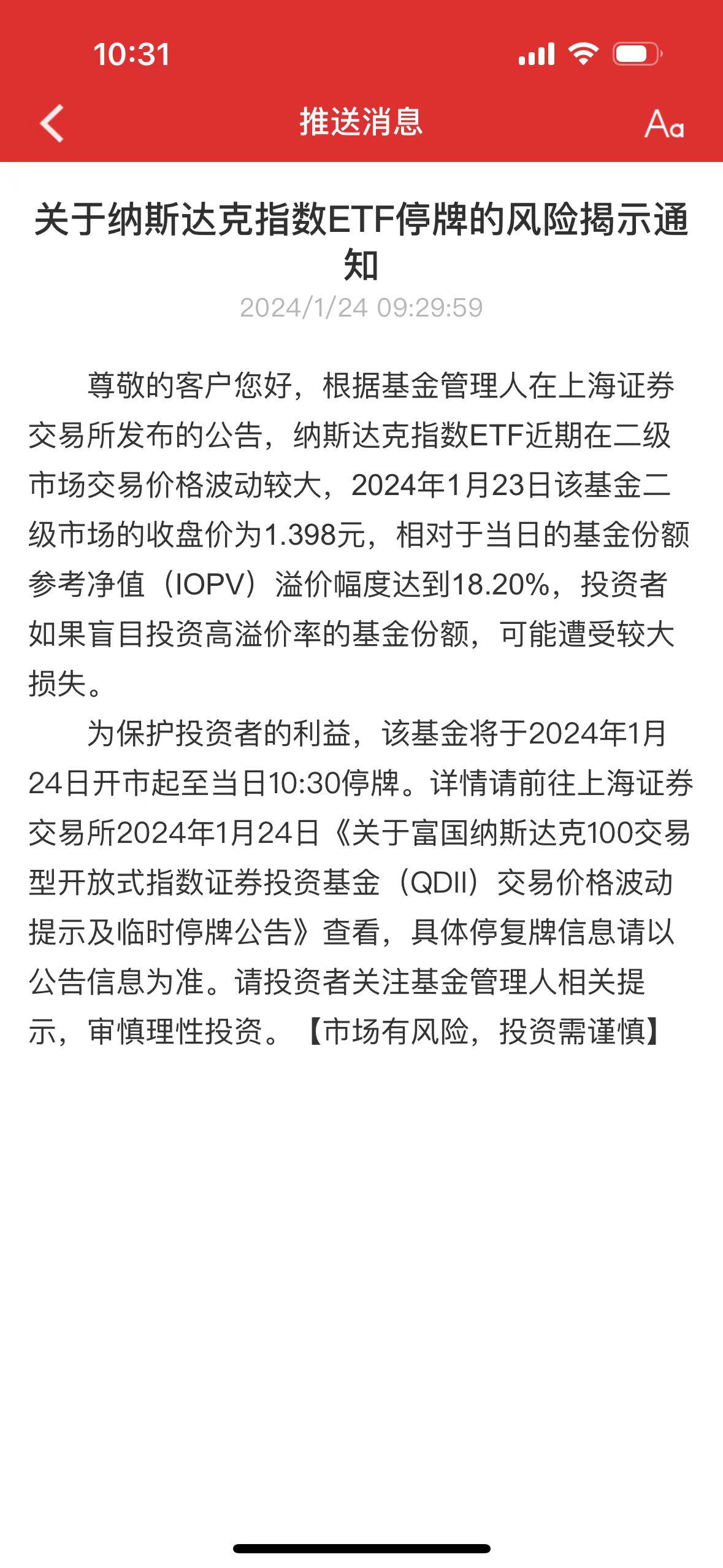 而華泰證券零售客戶端“漲樂財富通”上同樣發佈部分跨境ETF交易風險通知,提示投資者關注二級市場交易價格溢價風險,如果盲目投資,可能遭受到重大損失。