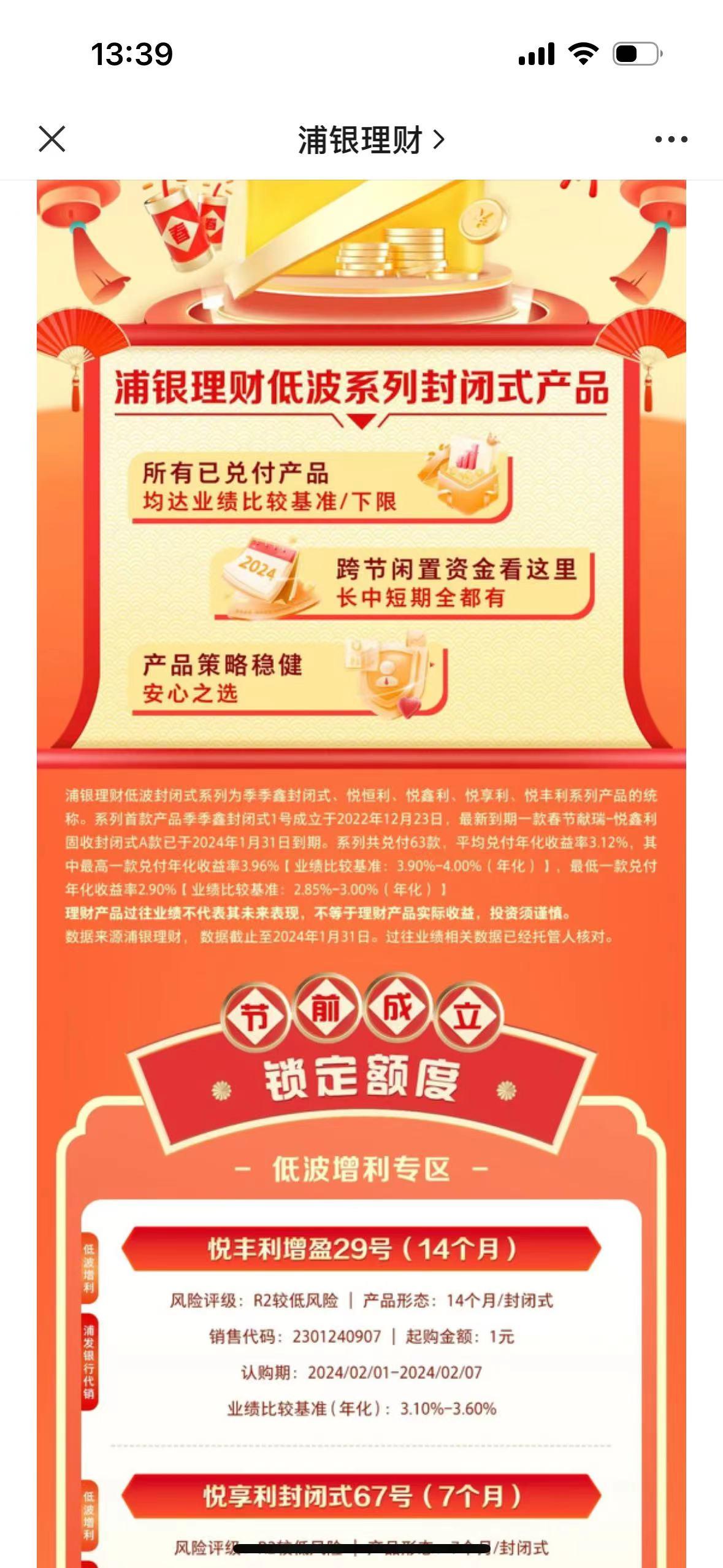 此外,浦銀理財發佈的“跨節理財指南”,向投資者推薦了其低波系列封閉式產品,即季季鑫封閉式、悅恆利、悅享利、悅豐利系列產品的統稱;建信理財推出的“財運大集”,主打低波穩健、活力活錢、短期精選。值得一提的是,招商銀行也對低波穩健進行解釋,是指通過配置不低於80%比例的存款等低波資產,追求產品淨值波動小,收益相對更加穩健。也就是說,低波穩健能夠有效抵禦住市場波動,抗風險性更強。