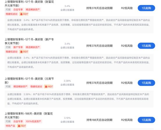 今年,理財子公司也圍繞壓歲錢理財推出精選產品,除了現金管理類產品以外,還有固收、固收+等,以滿足不同風險偏好的需求。比如平安理財推薦了一隻目標盈產品、一隻現金管理類理財產品和一隻固收類產品。民生理財推薦的六隻產品中,包括現金管理類產品和固收類產品,其中一隻產品成立以來年化收益率最高達到4.64%。興銀理財則推出一隻迎春款理財,業績比較基準爲3.38%-3.58%。