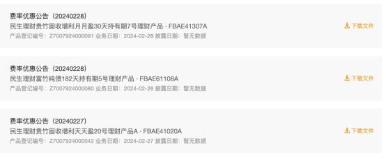 民生理財近期調整了多隻產品的費率。2月28日至3月28日期間,將固定管理費和銷售費由0.3%/年下調至0.1%/年。