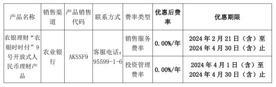 比如農銀理財“農銀時時付”9號開放式人民幣理財產品,根據公告,2月21日起,該只產品的銷售服務費率調至0%。4月1日起,該只產品的投資管理費率調整後爲0%。