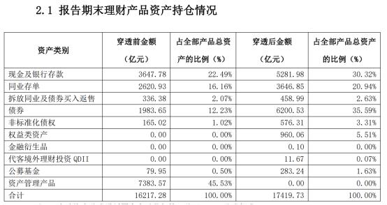 具體而言,以建信理財爲例,產品持有現金及銀行存款的資產佔比34.15%,持有債券和同業存單的資產佔比分別爲30.94%和24.58%。農銀理財持有現金及銀行存款、債券、同業存單的佔比分別爲30.32%、35.59%和20.94%。
