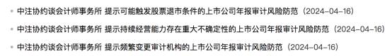 關於可能觸發股票退市條件的上市公司年報審計風險防範,中注協提示應重點關注做好風險評估工作;加大反舞弊資源投入;充分關注收入審計;評估前期非標審計意見對本期財務報表的影響等。