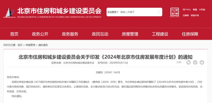 在北京,政府發佈了2024年住房發展年度計劃,強調“因區施策”和“一區一策”的精準調控策略。根據計劃,今年將供應約600萬平方米的商品住房,並計劃安排各類住房用地1060公頃,其中保障性住房用地佔比較大。此外,北京還計劃建設籌集保障性租賃住房7萬套(間),並規範發展住房租賃市場,通過完善住房租賃政策體系,實施押金託管和租金監管等措施,維護租房羣衆的合法權益。這些舉措旨在解決新市民、青年人和農民工的租房需求,進一步增強城市的吸引力。