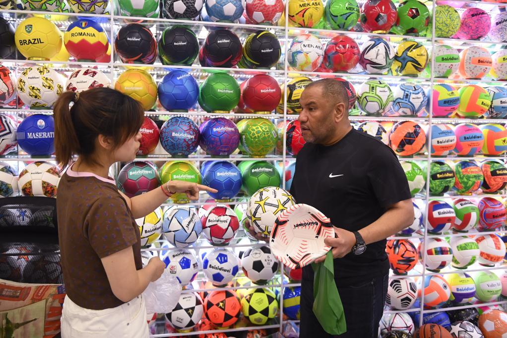 歐錦賽和即將到來的巴黎奧運會帶動了體育消費熱潮,世界各地的採購商抓住商機,提前來到義烏採購各式各樣的體育產品。主營足球產品的吳曉明同樣在忙着給客戶發貨。“現在我的倉庫裏有一個櫃子的貨要發往法國,還有一個西班牙的客戶已經返單,預計近期發貨。”吳曉明說。