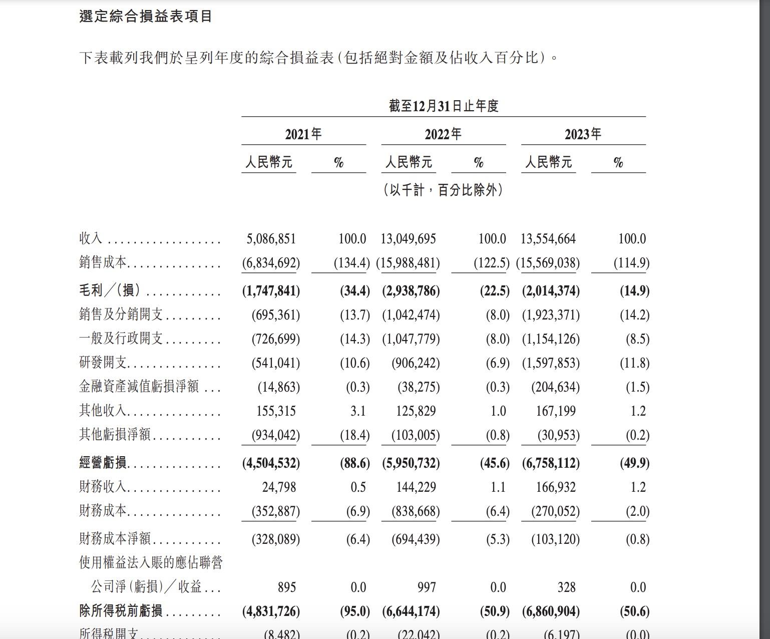 招股書表示,哪吒汽車對時尚運動型市場需求的精準覆蓋使其脫穎而出,持續取得高速增長與顯著市場份額。其汽車交付量從2021年的64,230輛,快速增長至2023年的124,189輛,年複合增長率爲39%。哪吒汽車已經延伸至利率更高的中高端市場,並將在中國的成功經驗深化到海外市場。
