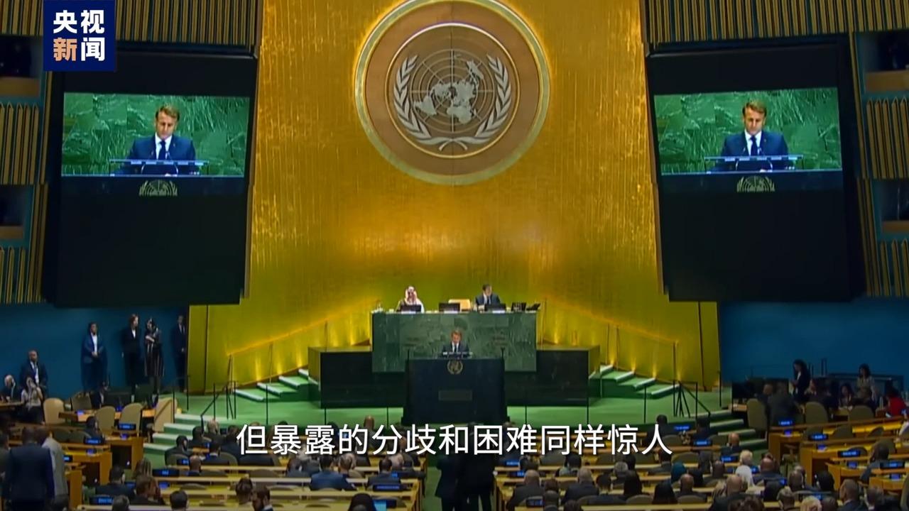 巴勒斯坦總統阿巴斯作爲當事國領導人,這次沒能親身參加聯合國任何一場商討巴以和平的會談,因爲美國拒絕給他簽證。在馬克龍牽頭的會議上,當法國、摩納哥、比利時、盧森堡、馬耳他、安道爾6個歐洲國家宣佈承認巴勒斯坦國時,會場掌聲雷動,巴勒斯坦總統卻只能在萬里之外通過屏幕表達感謝,以色列和美國則壓根沒參會。