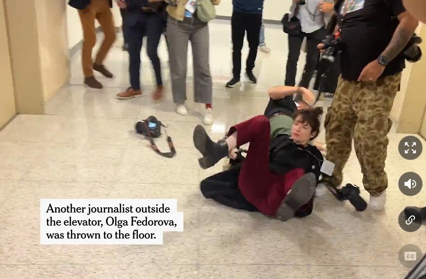 報道描述現場畫面稱,事發時一羣人正進入電梯,包括數名蒙面特工和一名攜帶相機的紐約報紙《amNewYork》的記者。一名身穿印有“警察”字樣防彈背心的蒙面男子突然抓住該記者並試圖將其推出電梯,其他人則高喊“滾出電梯”,蒙面特工還將另一名在電梯外拍照的女子推倒在地。