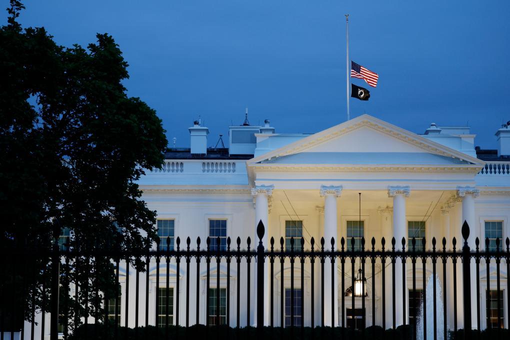2022年5月24日,在美國首都華盛頓,白宮降半旗向得克薩斯州槍擊事件受害者致哀。新華社發(沈霆攝)