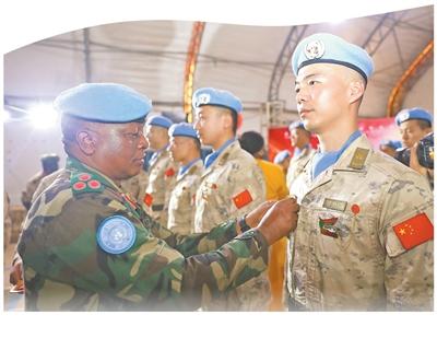 當地時間10月1日,聯合國阿卜耶伊臨時安全部隊(聯阿安全部隊)向中國第五批赴阿卜耶伊維和直升機分隊全體官兵授予聯合國“和平勳章”。
