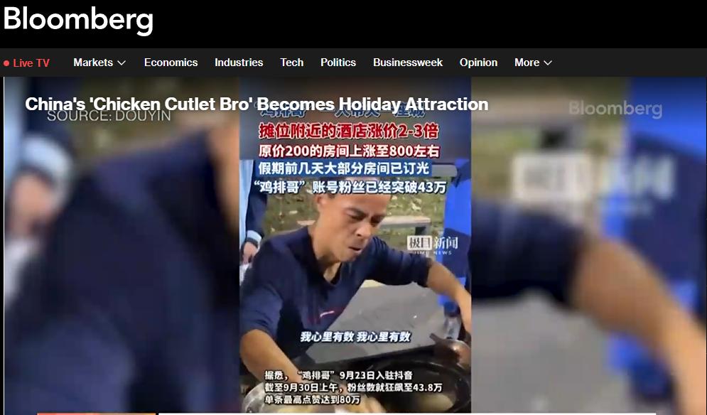 彭博社的主持人還在節目中稱,“雞排哥”的爆火還得到當地政府支持。當地政府在“雞排哥”攤位所在的路段鋪設道路,形成“雞排大道”,以至於他的攤位現在都成爲熱門打卡地,並在中國的社交媒體上成爲熱門話題。