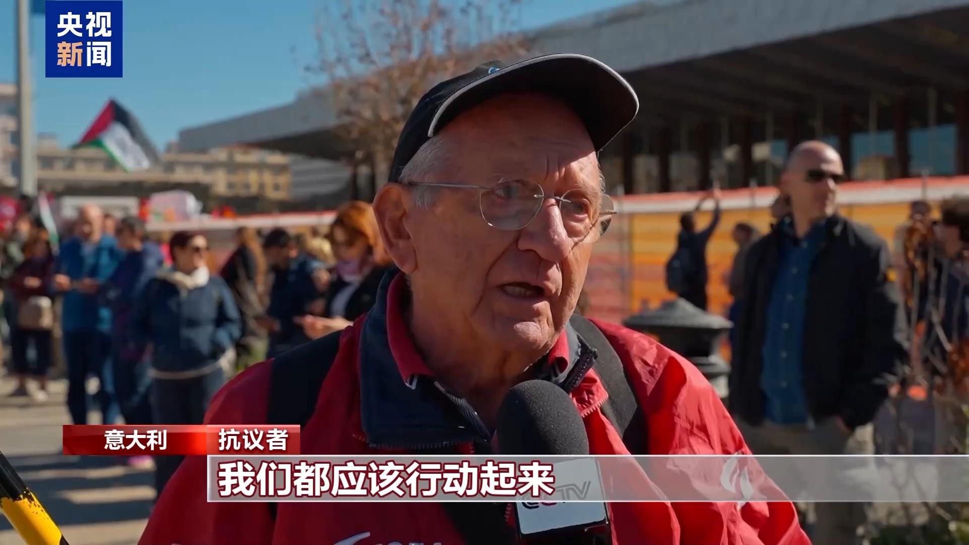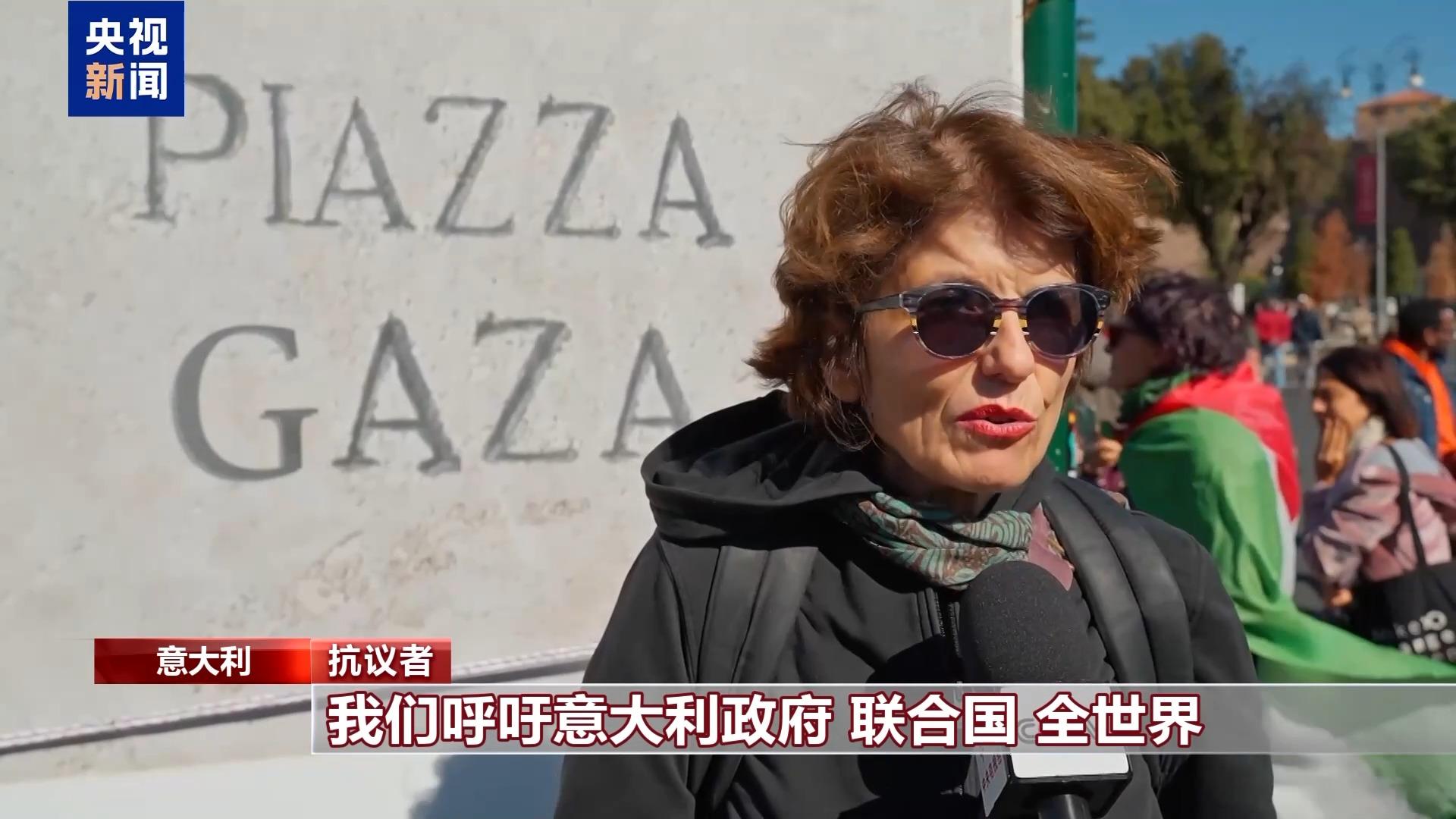 抗議者:在羅馬我們每天都自願走上街頭,我們呼籲意大利政府、聯合國、全世界來結束這場令人難以置信的悲劇。我們正在目睹一場史無前例的,正在進行的種族滅絕。