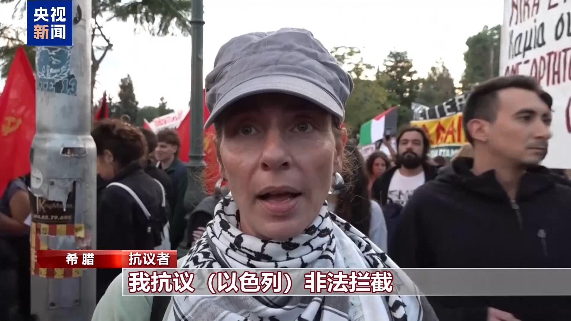 抗議者:我抗議以色列非法攔截包括希臘船隻在內的國際援助船隊,他們只不過是爲加沙運送兒童奶粉和藥品。