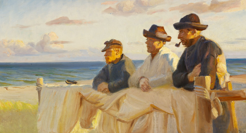 丹麥畫家邁克爾·安徹1902年的作品《工作日結束之際,三位漁夫享受晚霞》的寧靜感深深吸引着我。結合畫題與背景中的船隻,不難想象漁夫們正靜靜評估當日收穫。漁夫的工作智慧令我深思:何時該加倍努力,何時該放手,何時該接受眼前局面。雖然漁夫們收工的決定可能受多種因素影響,但我猜想當魚停止咬鉤時,即使條件尚佳,也意味着該轉移陣地或暫作休整。有時,通過察覺缺失之物,我們反而能更清晰認知該做什麼。(作者恩努馬·奧科羅,肖震冬譯)
