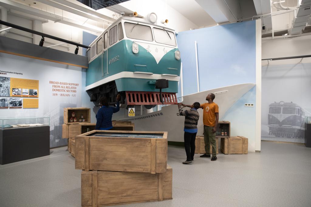11月12日,在贊比亞坦贊鐵路紀念園,幾名當地人參觀坦贊鐵路紀念館。新華社記者 彭立軍 攝