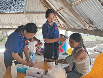 2023年2月,在中建七局承建的尼泊爾KTFT快速路項目部裏,200餘名沿線村民、學生在中尼青年志願者們的幫助下,有序登記、問診、取藥。這是中國(河北)第十四批援尼醫療隊舉行的義診活動。項目部屬地員工帕萬因長期從事駕駛工作,腰椎一直不舒服,中國醫生對他進行全面檢查後,採取了鍼灸治療,還免費提供藥品。“今天的鍼灸效果特別好,我現在感覺腰椎舒服了很多,給你們點贊!”帕萬說。