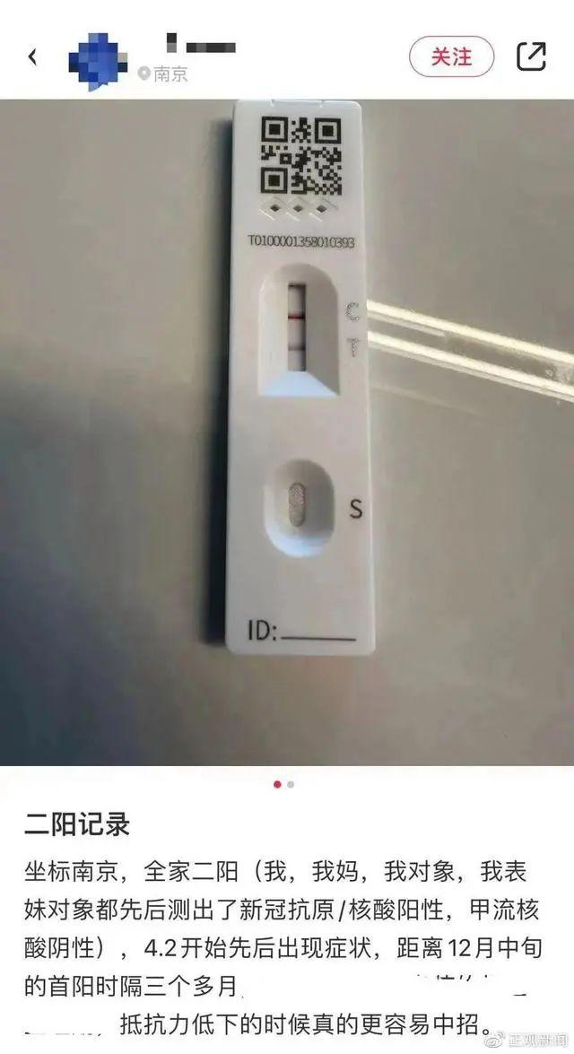 近日,不少人在網上曬出陽性的抗原試劑照片,稱自己“二陽”了,還有網友說自己“全家二陽”了……