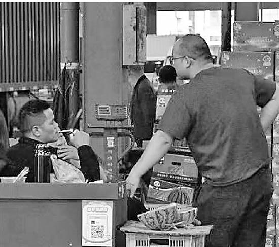 清晨5點,位於餘杭區的杭州果品市場一派忙碌景象,商家與客戶的交談聲加上往來三輪車、汽車鳴笛聲充斥着整個市場。就在人員如此密集的環境中,抽菸者不在少數,既有顧客,也有商家。他們旁若無人地吞雲吐霧,完全不顧其他人的感受。