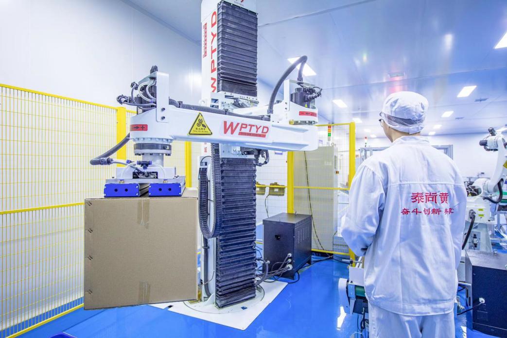爲實現黃精產品的標準化、規範化生產,2021年10月,全球首臺(套)20000平米高標準黃精深加工智能化工廠投產,以自研專利技術、引入德國設備、立足工業化4.0、對標“藥品標準”爲特色,在傳統“九蒸九曬”工藝基礎上進行科學突破創新。泰尚黃精負責人向記者舉例,通過智能控制系統,黃精凍乾粉生產線可以長期保持零下35℃的低溫,以最大程度保存營養物質,減少營養損耗。從原料清洗到包裝封箱,多條自動化生產線完成了大部分工作,整個工廠總共僅需20餘名員工駐守。